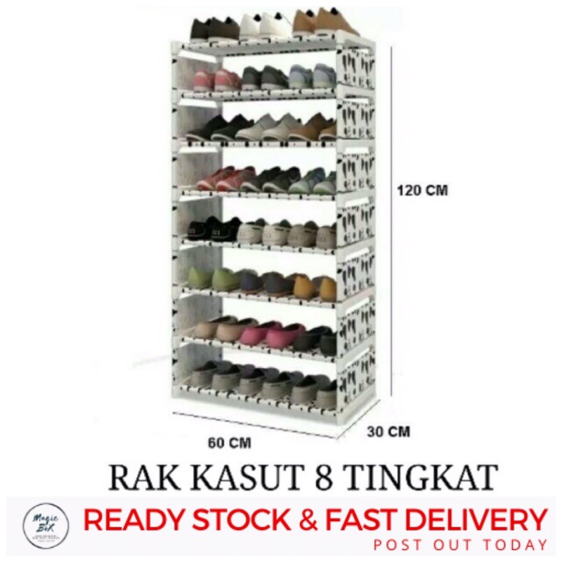Rak Kasut 8 Tingkat Rak Pelbagai Guna Rak Terbuka Kalis Air Diy Shopee Malaysia